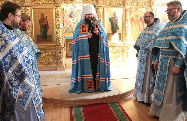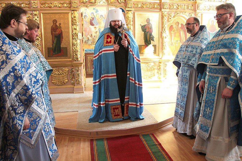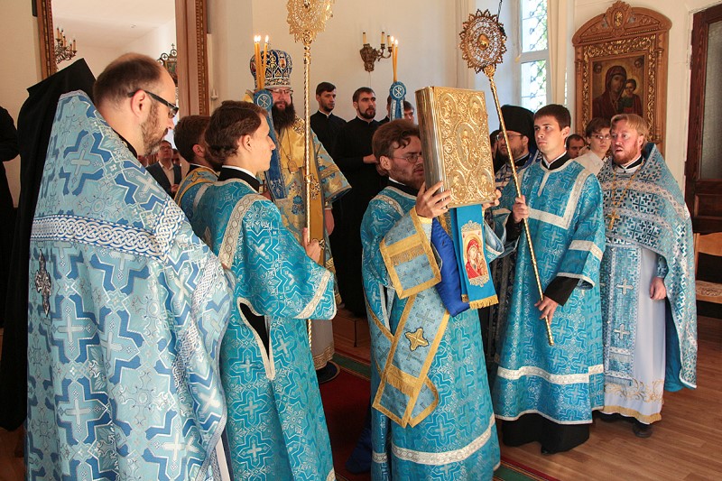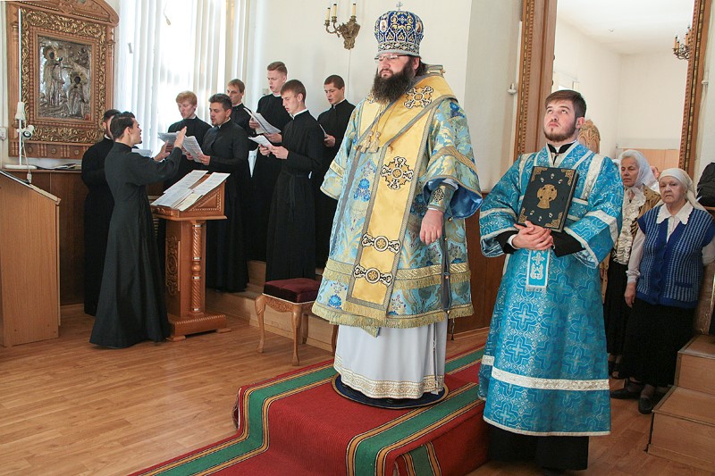 Его Высокопреосвященству сослужили: настоятель Покровского храма, игумен Тарасий (Ланге), первый проректор семинарии иеромонах Рафаил (Ивочкин), клирики Покровского храма, педагоги СПДС в священном сане.