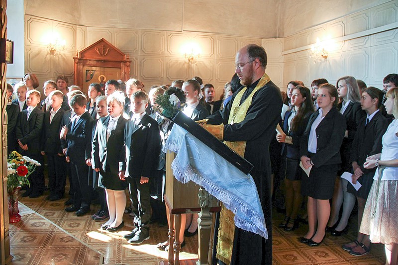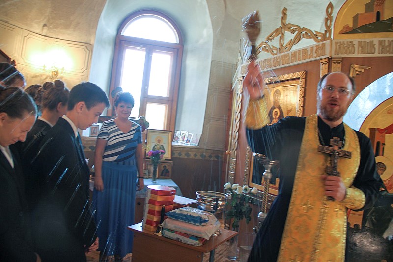В 9 часов в гимназическом храме в честь святителя Николая Чудотворца состоялся молебен на начало учебного года и торжественная часть. Торжество возглавил директор гимназии протоирей Святослав Худовеков и духовник гимназии иерей Василий Зверев. После молитвы клирики обратились к гимназистам, их родителям и учителям с пастырскими наставлениями.