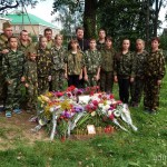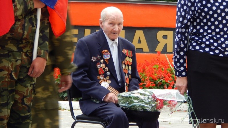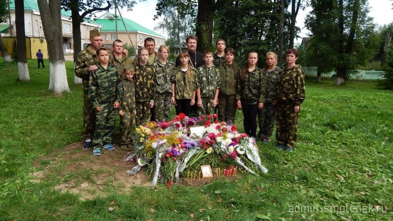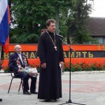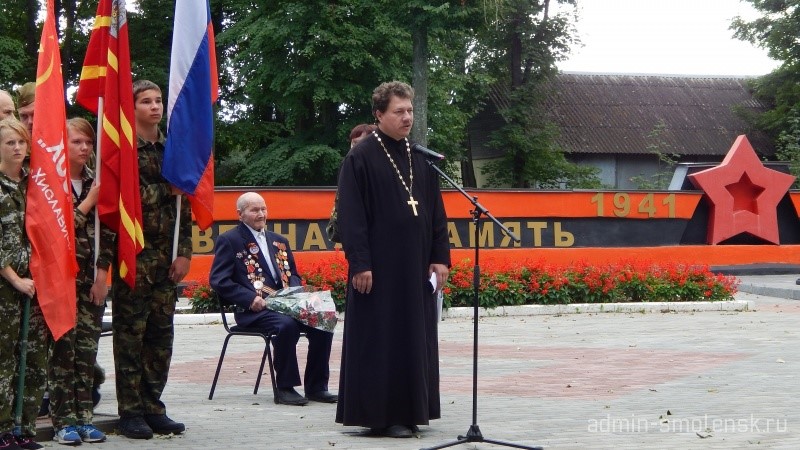 После минуты молчания участники митинга возложили цветы к могиле. Настоятель Свято-Успенского храма поселка Монастырщина иерей Андрей Никитенков исполнил патриотическую песню.