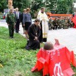 Затем в Сквере Памяти Героев была совершена заупокойная лития, которую возглавил благочинный церквей Хиславичского округа протоиерей Роман Свистун в сослужении настоятеля Свято-Успенского храма поселка Монастырщина иерея Андрея Никитенкова, и проведен траурный митинг.