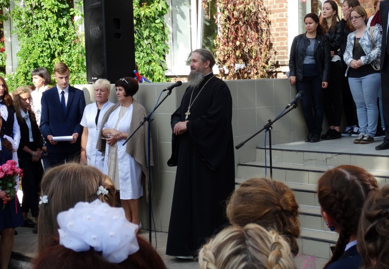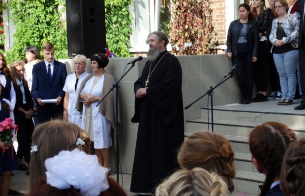 Обращаясь с поздравительным словом к учителям, ребятам и их родителям, отметил, что неслучайно просвещение славян началось с перевода и изучения слова Божьего, которое дает всякому христианину ориентир в жизни, научает любви к ближнему, воспитывает душу. Знание законов и наук само по себе еще не делает человека добрым и любящим. Нужно воспитывать и сердце.