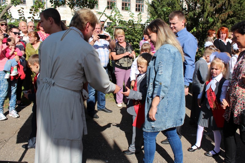 Протоиерей Николай Бондар поздравил всех учителей, детей и родителей с Днем знаний и благословил первоклассников образом Божией Матери «Одигитрия».