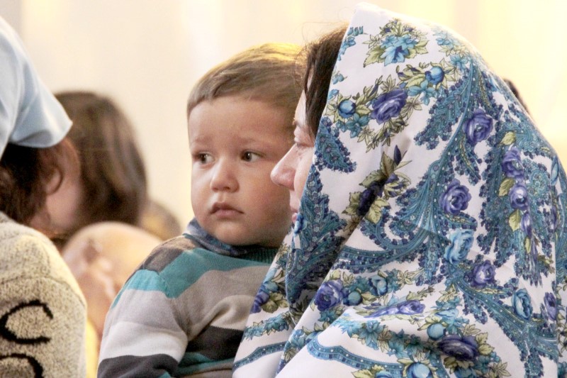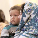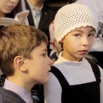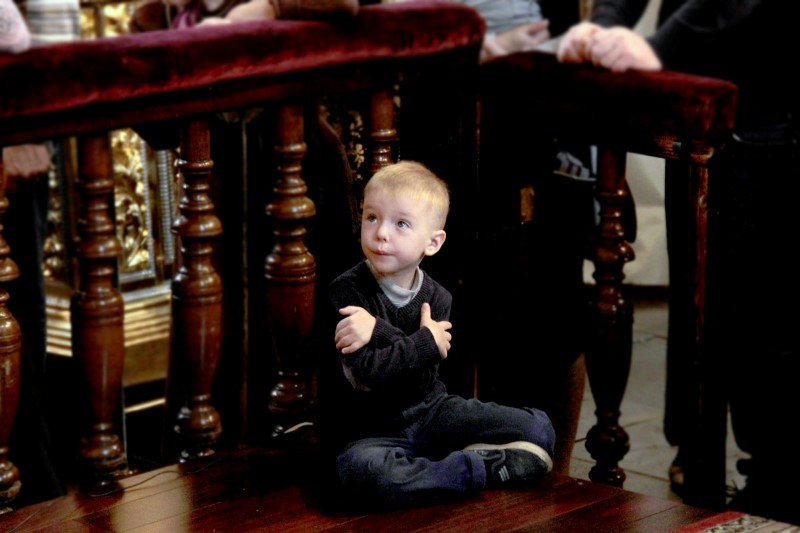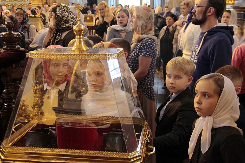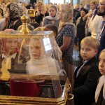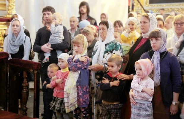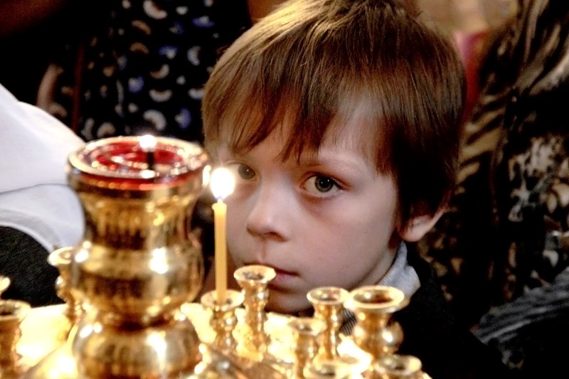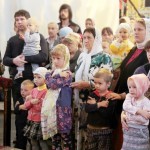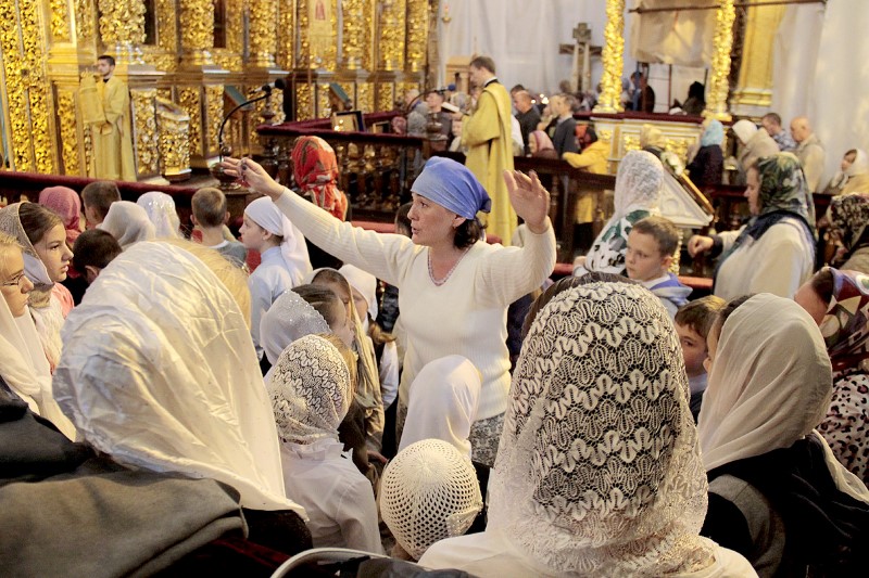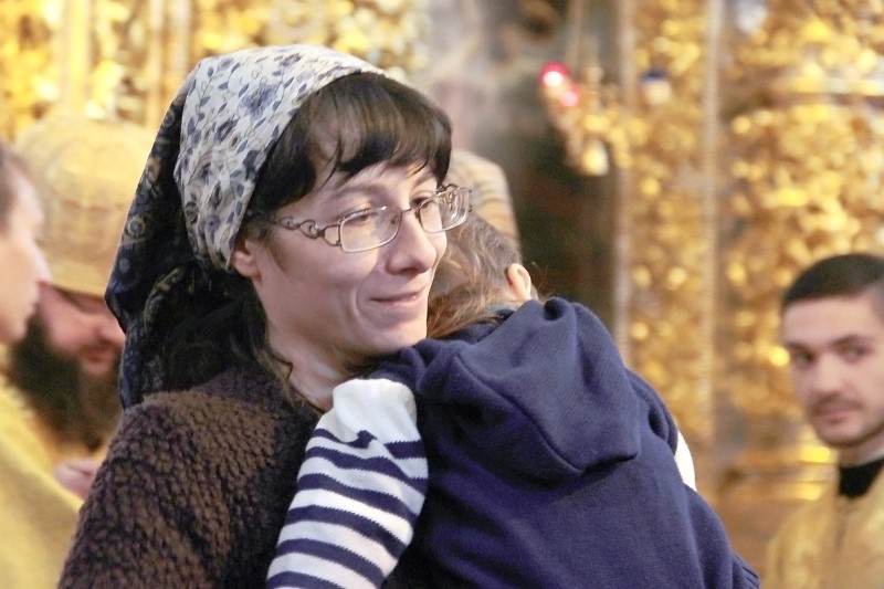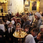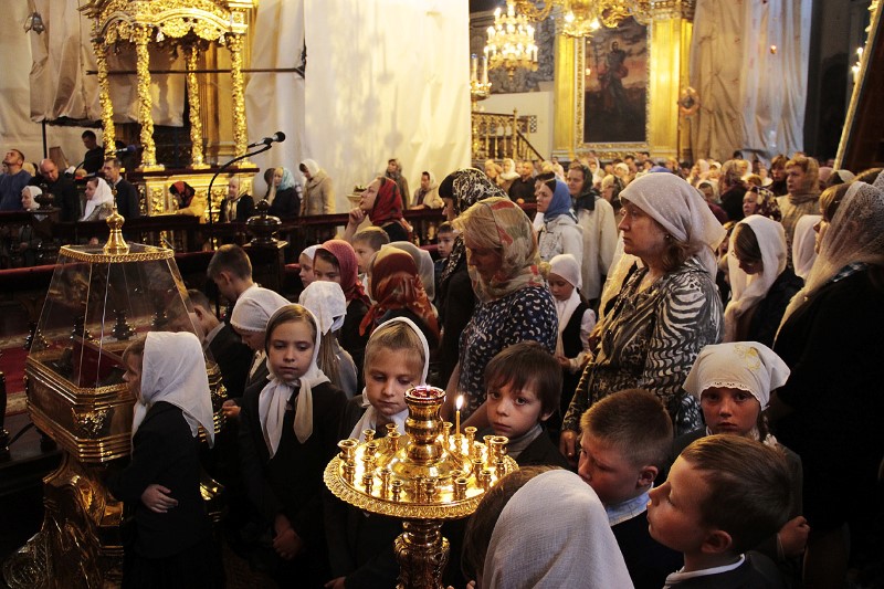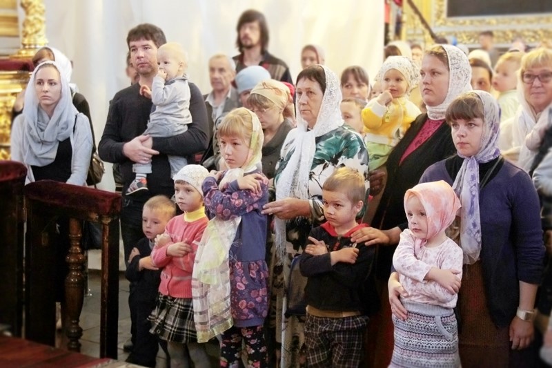 Среди молившихся в храме верующих было множество школьников, педагогов, родителей с маленькими детьми.
