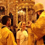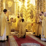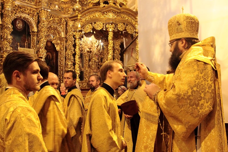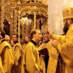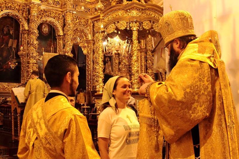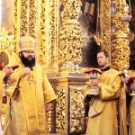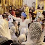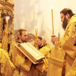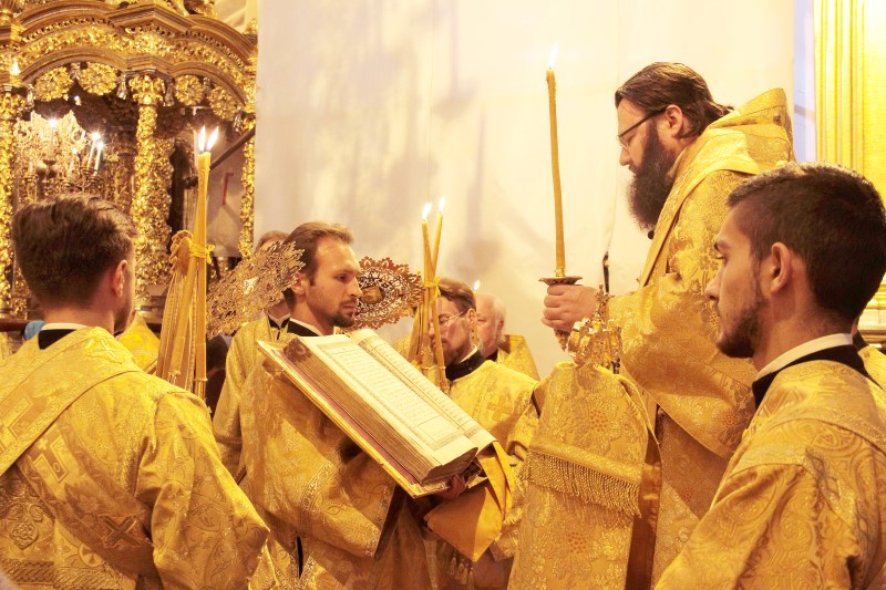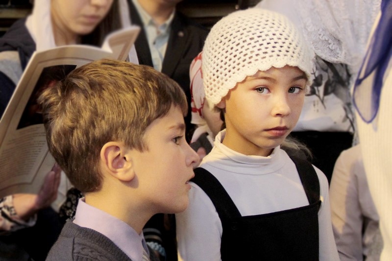 За богослужением пели два хора: Архиерейский хор Свято-Успенского собора (регент Елена Фролова) и детский хор Смоленской православной гимназии (регент – Оксана Яковлева).