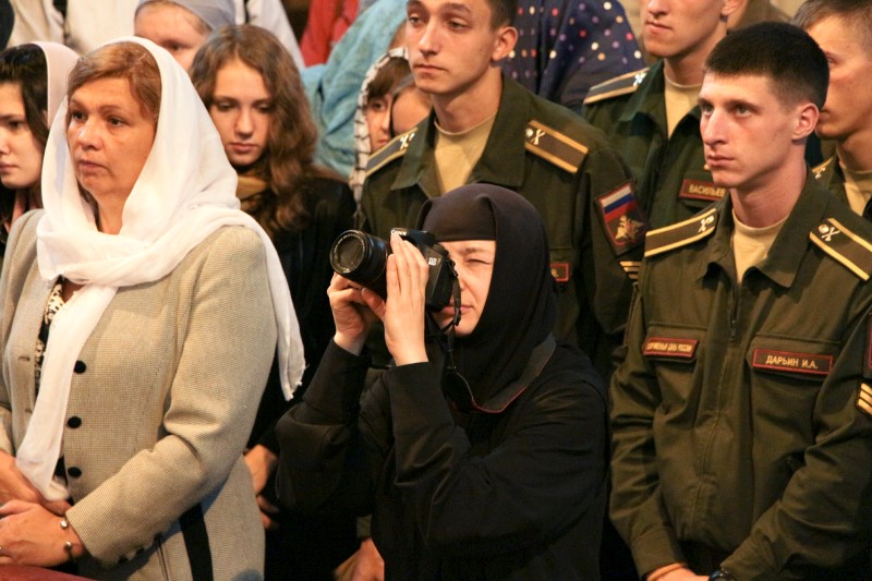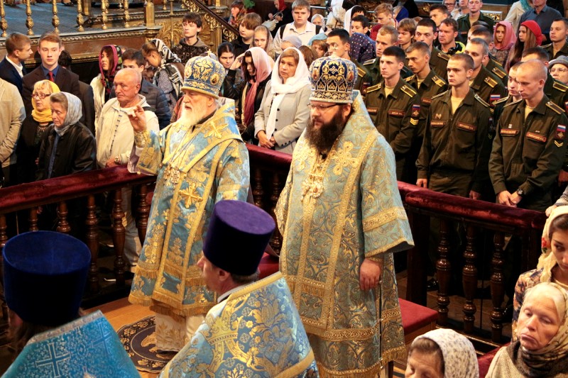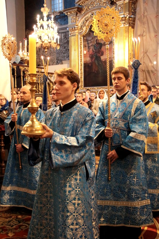 Песнопения богослужения исполнили два хора: Архиерейский хор Свято-Успенского собора (регент – Елена Фролова) и ученический хор Смоленской Православной гимназии (регент – Оксана Яковлева).