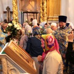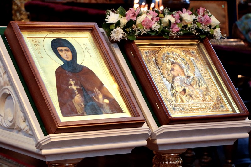 Всем, бывшим в этот день в кафедральном храме на молитвенную память были розданы иконы преподобной Евфросинии Полоцкой.