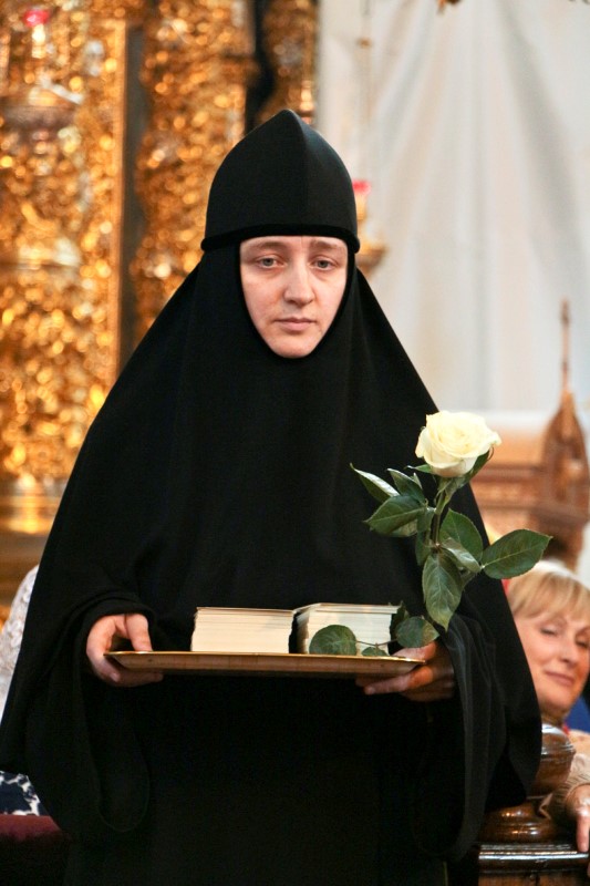 Митрополит Павел напомнил, что в этот день совершается еще память святых Адриана и Наталии, и поздравил именинниц, преподнеся каждой белую розу.
