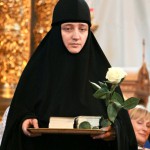 «В истории Церкви образ преподобной Евфросинии ярко представлен ее личными подвигами, ее миротворческой деятельностью в эпоху междоусобиц между князьями. Мы представляем ее, с одной стороны, как хрупкую монахиню, игумению, а с другой стороны, мы видим, что сила Божия в немощи совершается, и в хрупком человеке проявляются великие дела Божии, которым поклонялись в последующие многие века великие князья, цари, иерархи Церкви и народ Божий. И не только ее храмостроительство, попечение о книжности и об образовании, но прежде всего – ее попечение об искренней горячей молитве к Богу, ее личные подвиги монашеские, ее искреннее женское сердце, которое было способно преодолевать все трудности, что посылала ей жизнь. Ее образ удивляет нас. И не только все прошедшие века, но и сегодня мы удивляемся мужеству этой великой женщины и монахини, святой угодницы Божией, преподобной мати Евфросинии. <…>