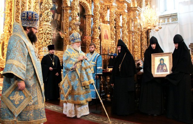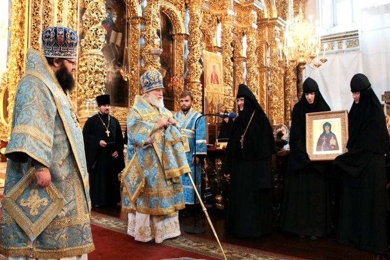 В завершение Литургии митрополит Павел, митрополит Исидор в сослужении духовенства совершили молебное пение Пресвятой Богородице и преподобной Евфросинии Полоцкой.