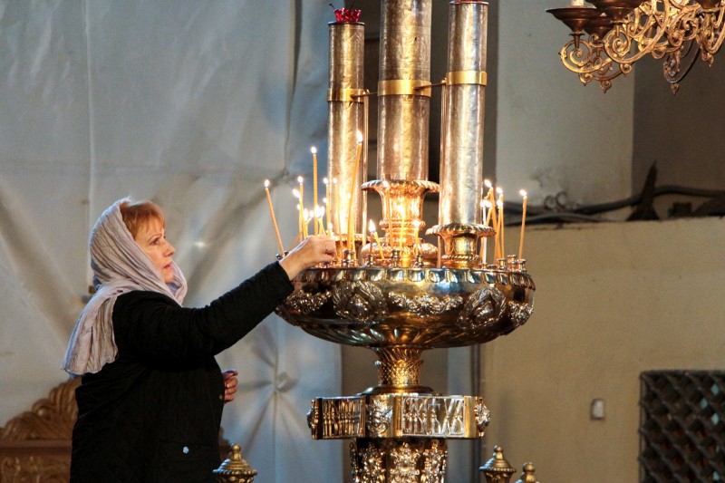 За богослужением была вознесена молитва о мире на Украине.
