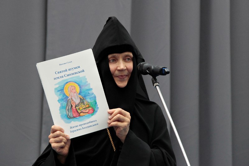 Особо игумения Евдокия представила книгу «Святой игумен земли Смоленской. Житие преподобного Герасима Болдинского», первые сигнальные экземпляры которой были подарены митрополиту Исидору, митрополиту Павлу и Ольге Окуневой.