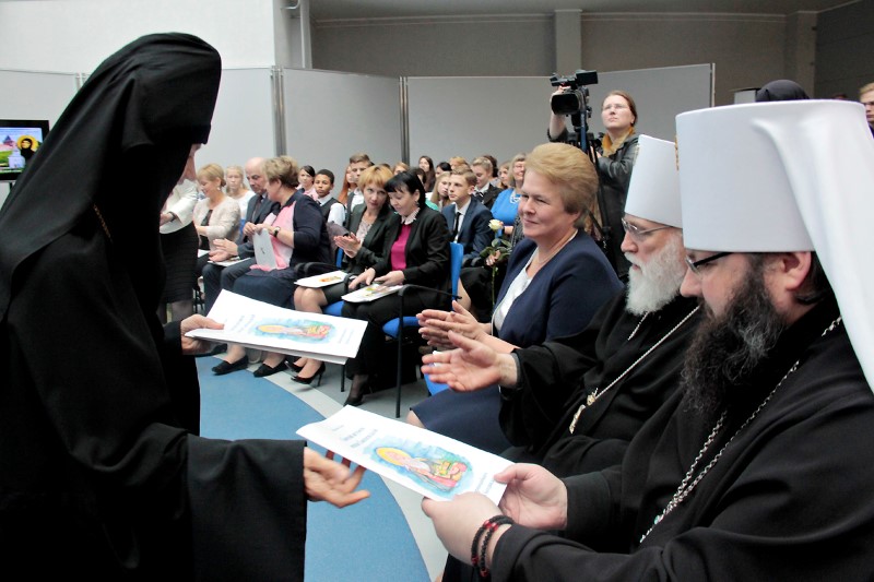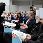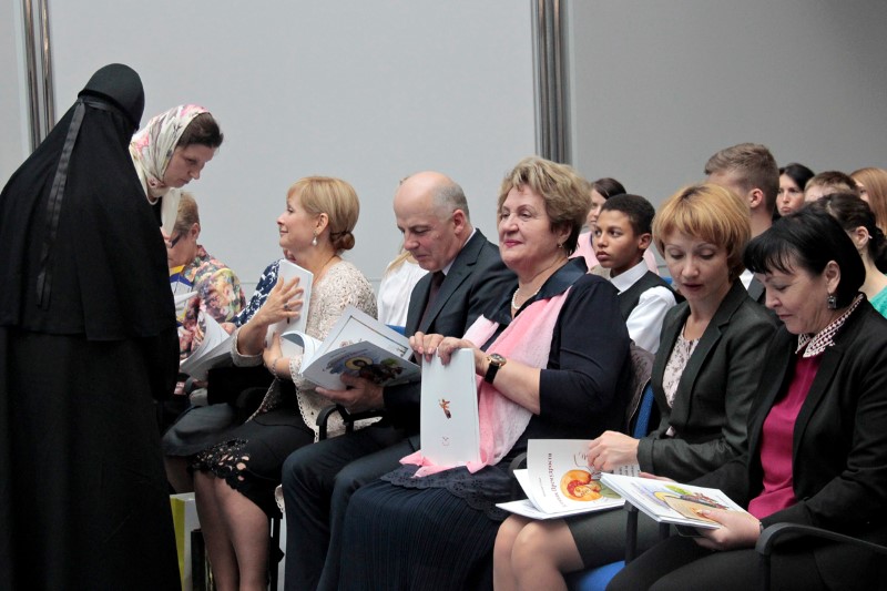 Игумения Евдокия (Левшук) представила участникам форума вышедшие в свет издания, посвященные преподобной Ефросинии Полоцкой, которые были вручены архиереям, представителям светской власти, смоленским учебным заведениям.