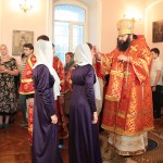 По окончании богослужения архипастырь сердечно поздравил настоятеля храма иерея Дионисия Новикова, ректора СМПДУ Елену Полянскую, всех учащих и учащихся и прихожан храма с престольным торжеством.