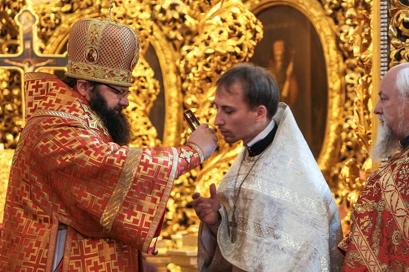 За Литургией Его Высокопреосвященство рукоположил диакона Алексия Колесникова в сан пресвитера.