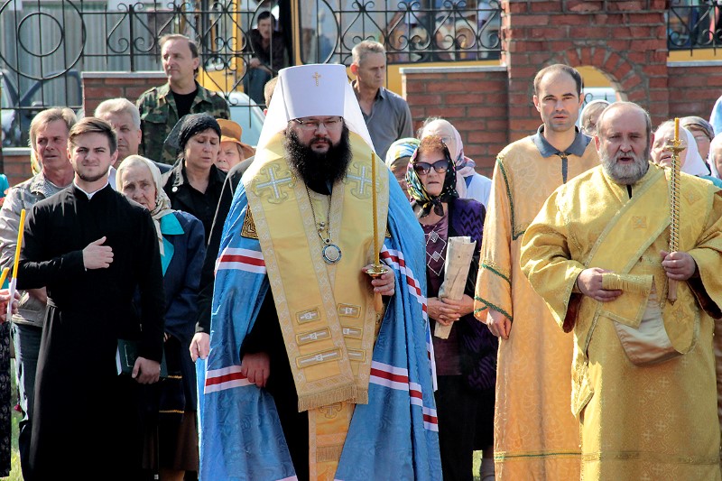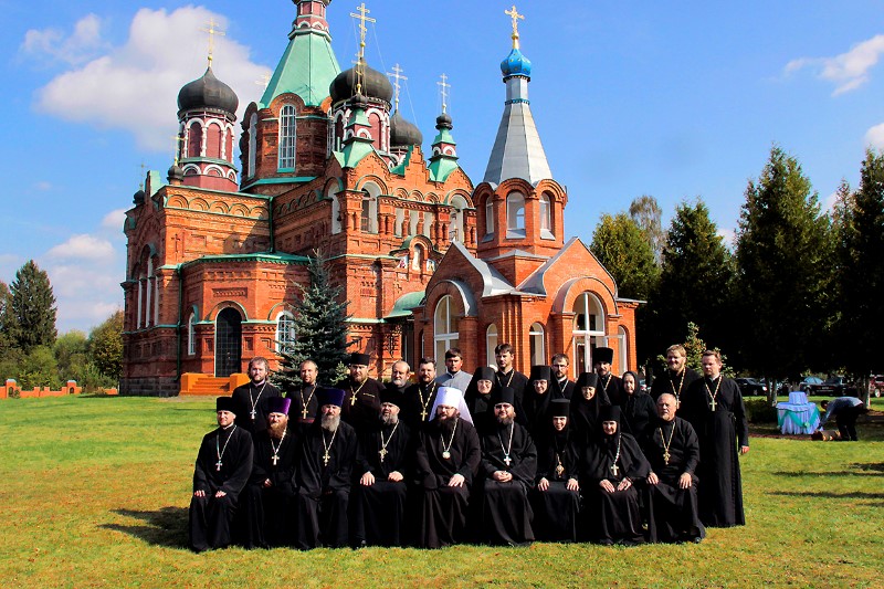 Его Высокопреосвященству сослужили благочинный Ярцевского округа, настоятель храма святых апостолов Петра и Павла протоиерей Василий Мовчанюк, благочинный Смоленского городского округа протоиерей Павел Петровский, благочинный Десногорского округа протоиерей Виталий Сладков, настоятель Спасо-Преображенского монастыря города Рославля, благочинный монастырского благочиния игумен Мелетий (Павлюченков), духовенство Смоленской митрополии.