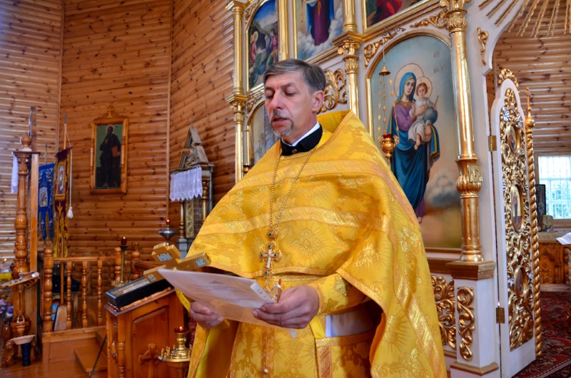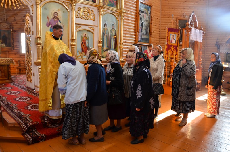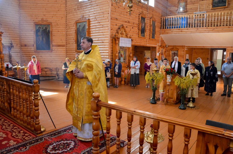 11 сентября 2016 года, в Неделю 12-ю по Пятидесятнице, день памяти Усекновения главы Пророка, Предтечи и Крестителя Господня Иоанна, благочинный церквей Хиславичского округа протоиерей Роман Свистун совершил Божественную литургию в Борисоглебском храме поселка Хиславичи.