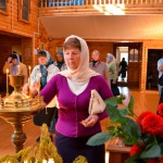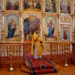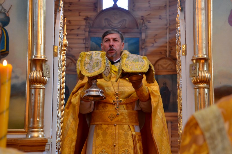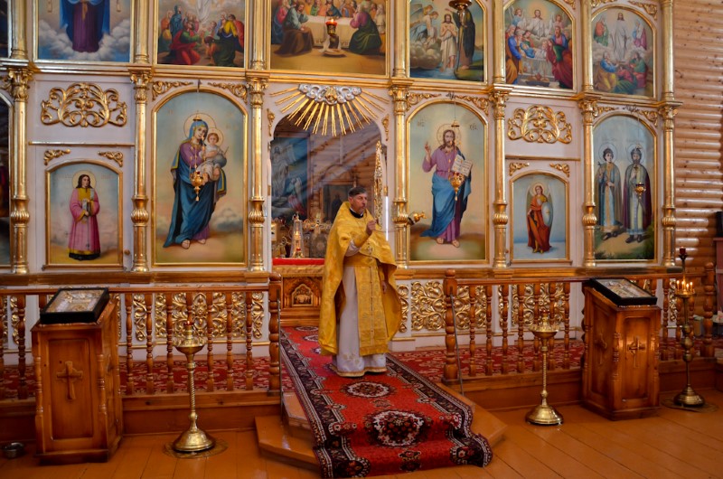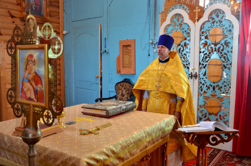 За богослужением пел приходской хор. После сугубой ектении священник вознес молитву о мире на Украине.