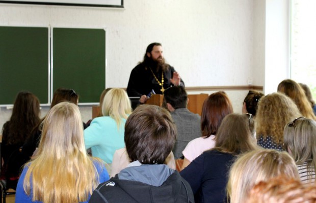Состоялась встреча студентов Российской академии народного хозяйства и государственной службы при Президенте РФ (РАНХиГС) с настоятелем храма Воскресения Христова (Словущего) иереем Олегом Цыгановым.