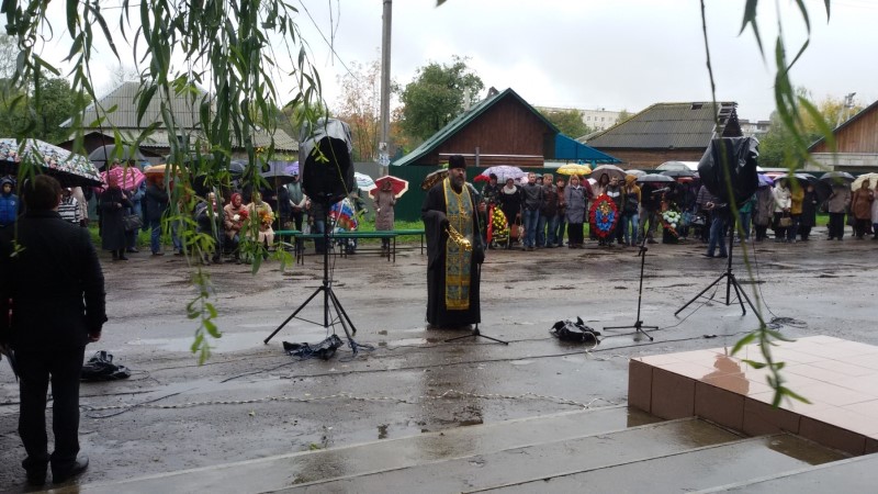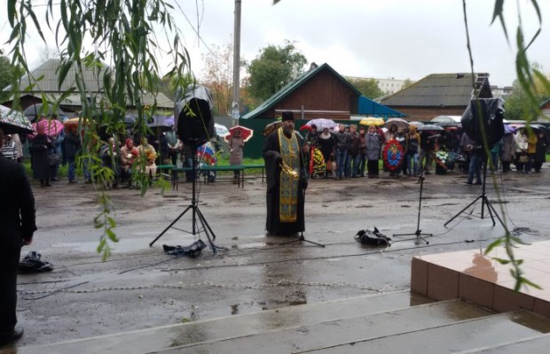 Закончился митинг минутой молчания и возложением цветов и венков к месту захоронения погибших.