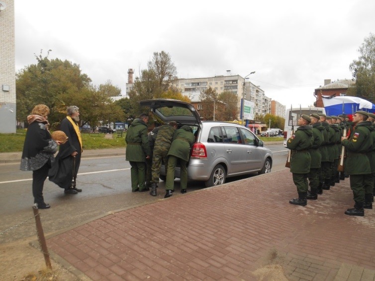 В храме мученика Меркурия Смоленского был совершен чин погребения. Его совершил настоятель прихода храма в честь мученика Меркурия Смоленского протоирей Владимир Дмитриев. После совершения чина погребения, траурный кортеж проследовал к месту захоронения – на Братское кладбище, где похоронены 5652 советских солдат и офицеров, погибших при обороне и освобождении нашего города.