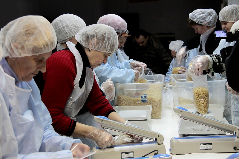 В течение 2-х часов добровольцы расфасовывали крупы, горох, фасоль, макароны по продуктовым наборам. В этот раз в акции участвовали волонтеры из добровольческой службы «Милосердие», действующей при Смоленской епархии, члены регионального отделения Всероссийского общества глухих, неравнодушные жители города разных возрастов. Самая юная участница акции Диана (2,5 года) взяла на себя одну из самых важных работ – подготовку пакетов к дальнейшей расфасовке. По словам ее бабушки, педагога по образованию, привлечение ребенка с самых ранних лет к осознанию необходимости помощи другим людям – одно из самых важных моментов в формировании личности человека.
