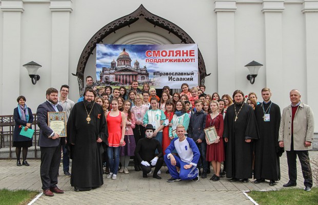 В завершение все сделали памятную фотографию с баннером «Смоляне поддерживают! #Православный Исаакий».