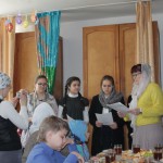 Регент храма в честь Георгия Победоносца Елена Павлишова поздравила всех прихожанок с праздником, дети читали стихи, детский хор исполнил песню о маме. Особым, необычным, красочным подарком для женщин стал видеофильм, запечатлевший прихожан Свято-Георгиевского прихода. В нем некоторые прихожане дали интервью о значении праздника, пожелали своим близким веры, любви, служения, самые трогательные слова о мамах прозвучали от малышей.