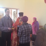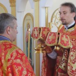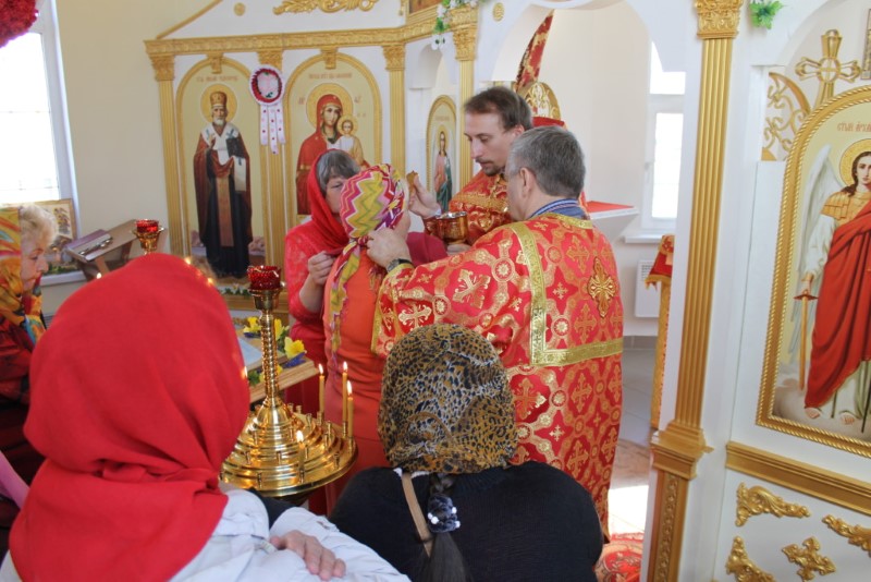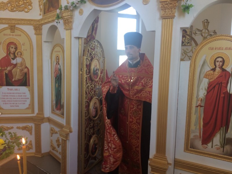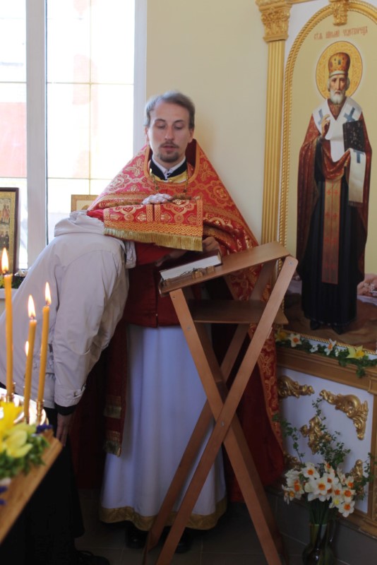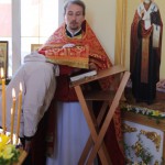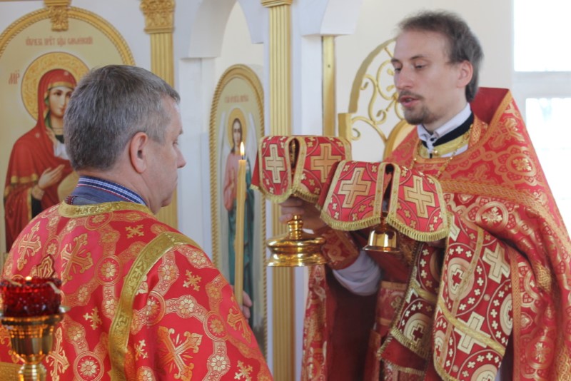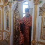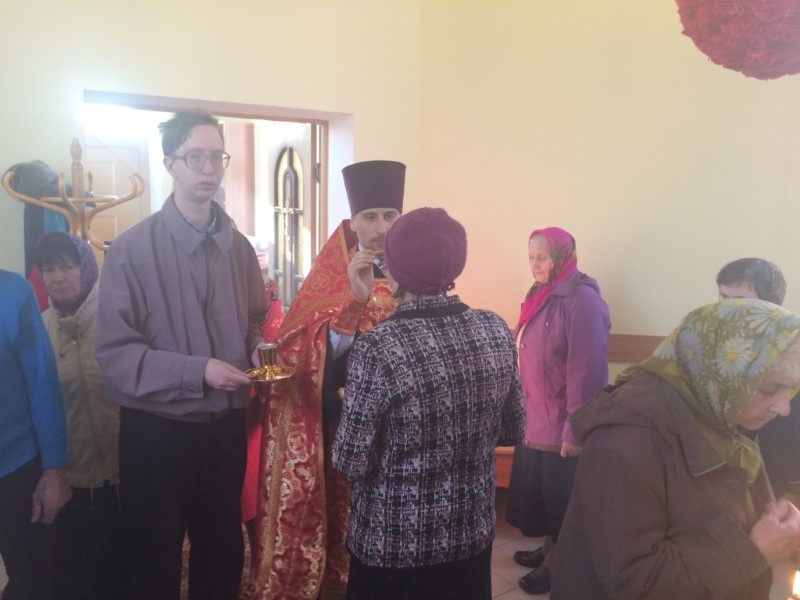 Отец настоятель обратился к прихожанам с пастырским словом, в котором поздравил всех с праздником. После этого прихожане храма поздравили своего настоятеля с первым престольным праздником, вручив иерею Алексию букет цветов.