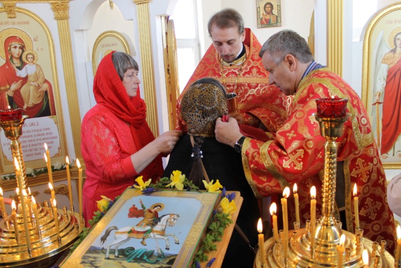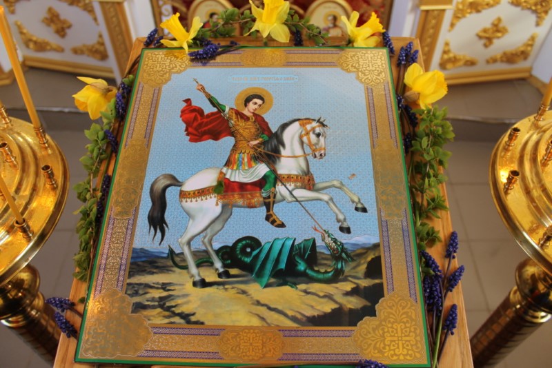 В конце Литургии был совершен праздничный молебен, в конце которого настоятелем прихода была прочитана молитва святому великомученику Георгию Победоносцу.