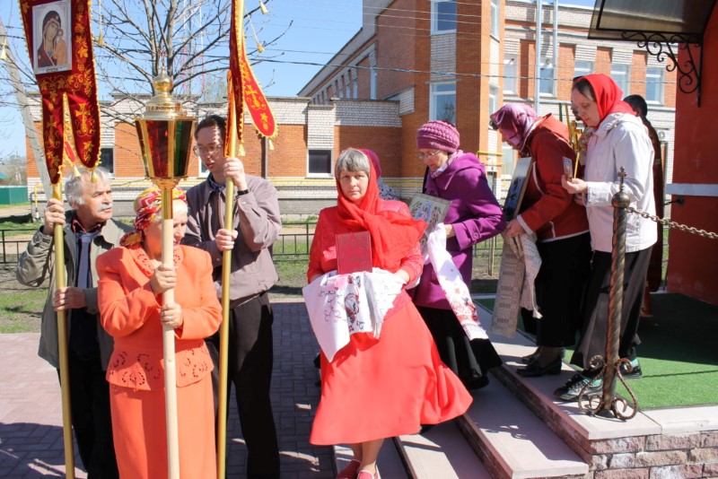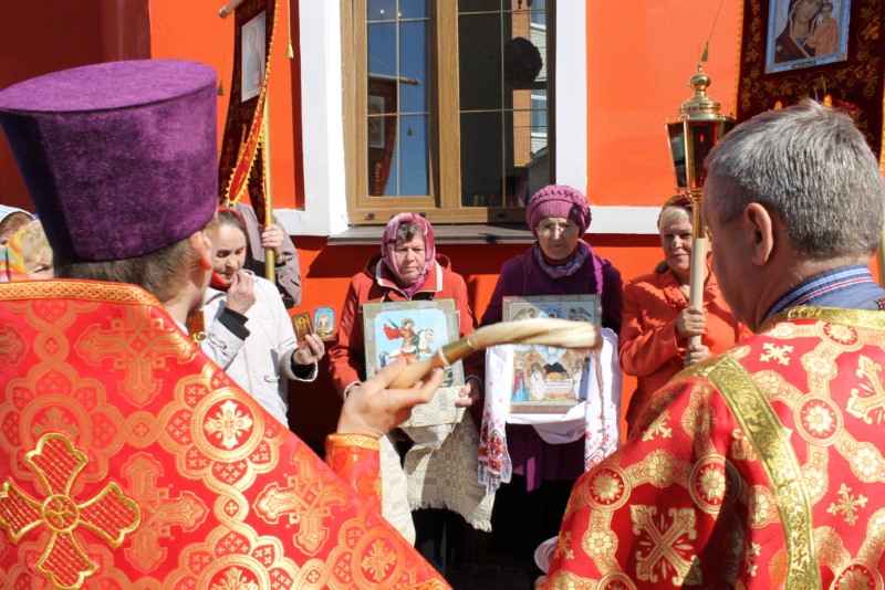 После праздничного молебна состоялся крестный ход вокруг храма.