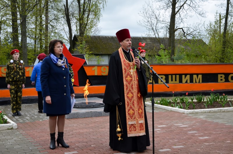 На митинге протоиерей Роман сердечно поблагодарил ветеранов за Победу, пожелал односельчанам телесных и духовных сил, совершил заупокойную литию по погибшим в Великой Отечественной войне.