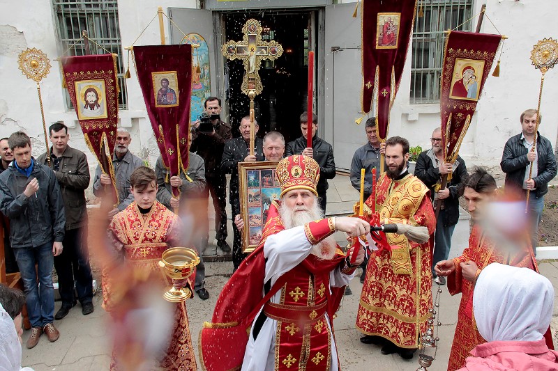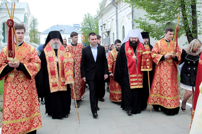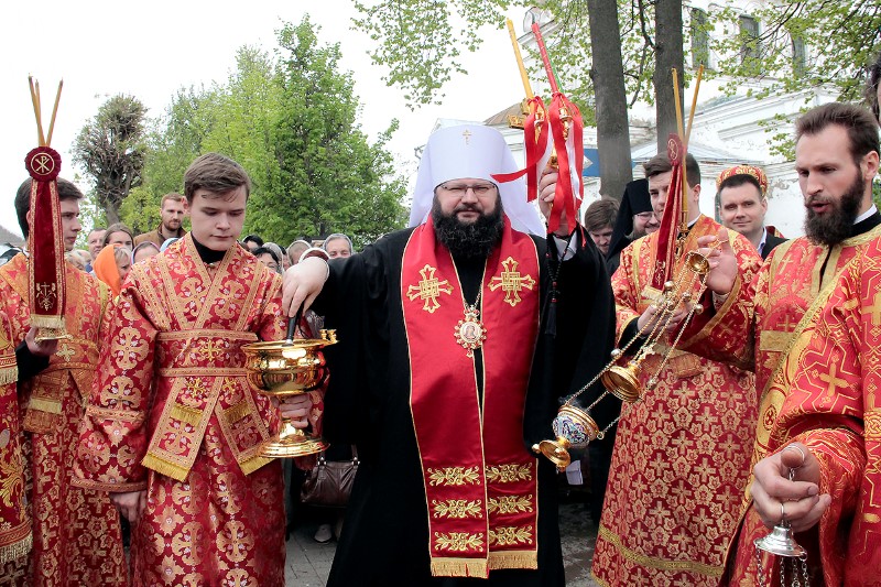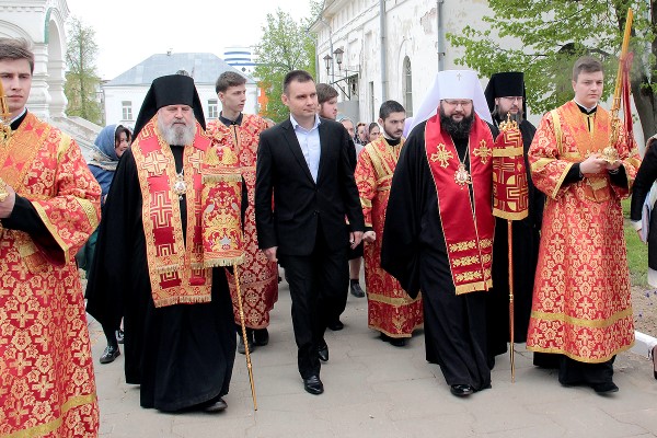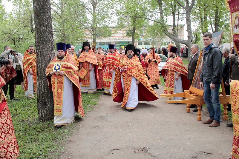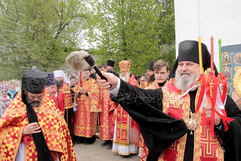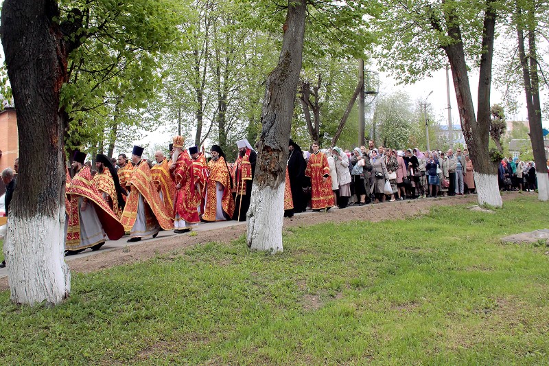 В конце литургии духовенство и миряне под пасхальные песнопения совершили крестный ход вокруг храма с Иверской иконой Пресвятой Богородицы. Чудотворный Иверский образ Божией Матери, который в 1765 году купцами братьями Калашниковыми был принесен в Вязьму из Москвы, в эти дни доставлен в Тихвинский храм Гагарина для почитания верующими. Икона будет пребывать на Гагаринской земле две недели. Говоря о значимом событии для верующих гагаринцев, митрополит Исидор отметил:
