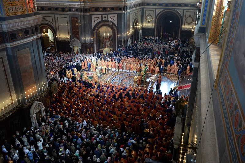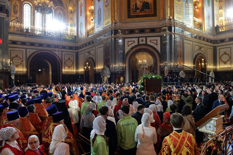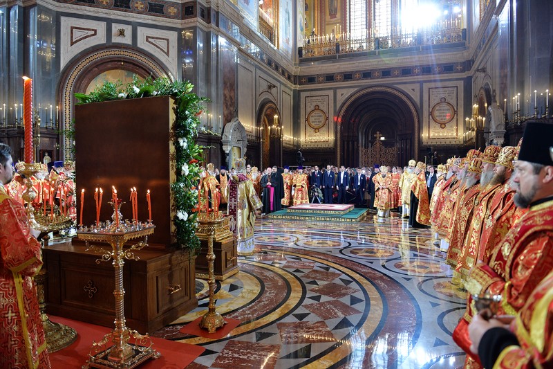 Прямую трансляцию богослужения осуществлял телеканал «Россия-24».