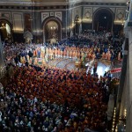 Богослужебные песнопения исполнили Патриарший хор Храма Христа Спасителя под управлением И.Б. Толкачева и камерный хор Храма Христа Спасителя под управлением С.Н. Соколовской.