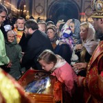 Участники богослужения ? духовенство и верующие ? приложились к мощам, были помазаны елеем и получили иконки святителя Николая с Патриаршим благословением.