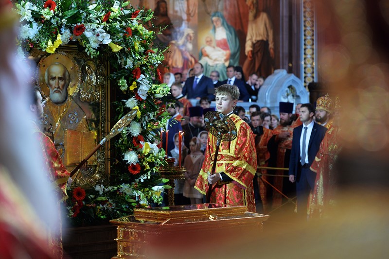 21 мая 2017 года, в канун дня празднования перенесения мощей святителя Николая Чудотворца из Мир Ликийских в Бар (1087), Святейший Патриарх Московский и всея Руси Кирилл возглавил всенощное бдение и встречу мощей святителя в кафедральном соборном Храме Христа Спасителя г. Москвы.