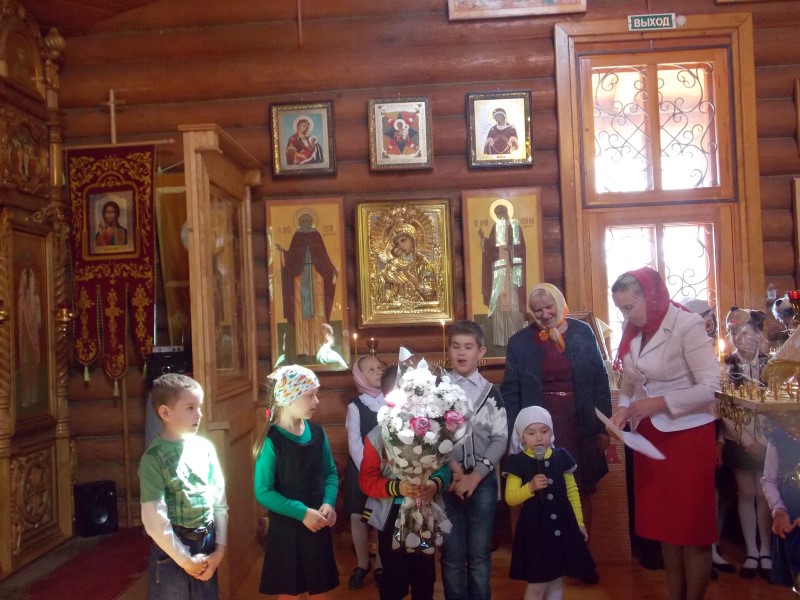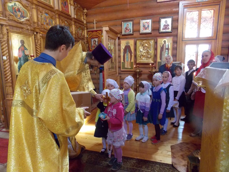 Всем детям, находящимся в храме, были вручены сладкие подарки, для участников богослужения организовано чаепитие и розданы иконки Пресвятой Богородицы «Велижская».