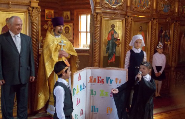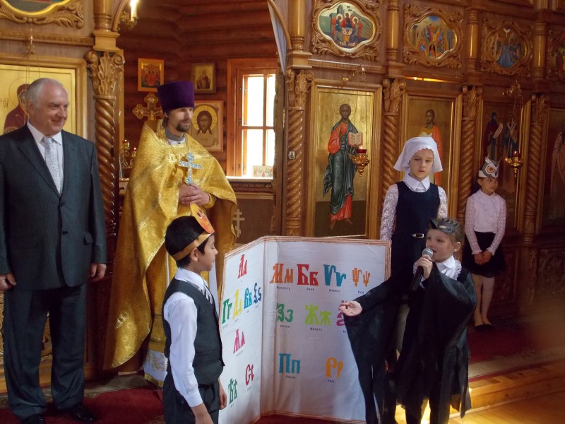 Продолжили поздравление дети – воспитанники православного сада №2 города Велижа, учащиеся СООШ №1 и воспитанники воскресной группы храма, которые выступили с праздничной инсценировкой о буквах славянского алфавита, рассказали историю о том, как необходимо хранить свою культуру, традиции и православные обычаи. Дети также рассказали стихотворения и исполнили песню об ангелах.