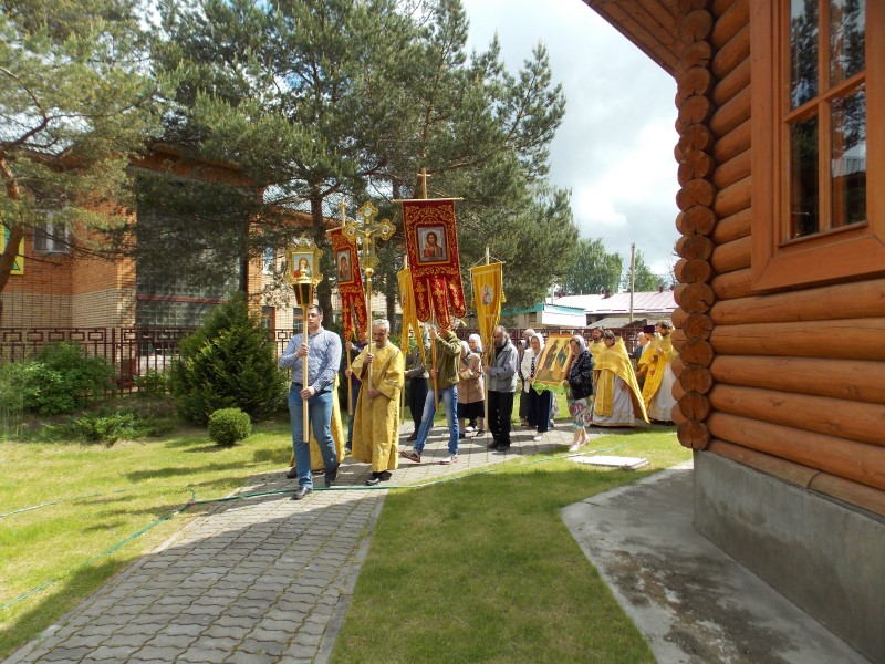 По окончании Литургии был совершен крестный ход. Под праздничный перезвон колоколов участники богослужения прошли вокруг храма с молебным пением к святым просветителям Кириллу и Мефодию.