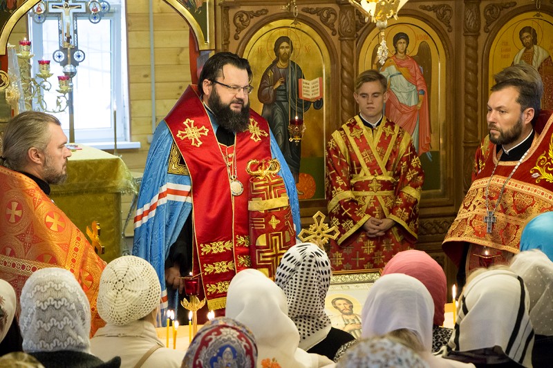 Его Высокопреосвященству сослужили настоятель храма святого Александра Невского протоиерей Андрей Мельничук, клирик храма иерей Сергий Мельничук и штатный священник храма святого Иоанна Златоуста в Колодне иерей Павел Пронин, духовенство Свято-Успенского кафедрального собора города Смоленска.
