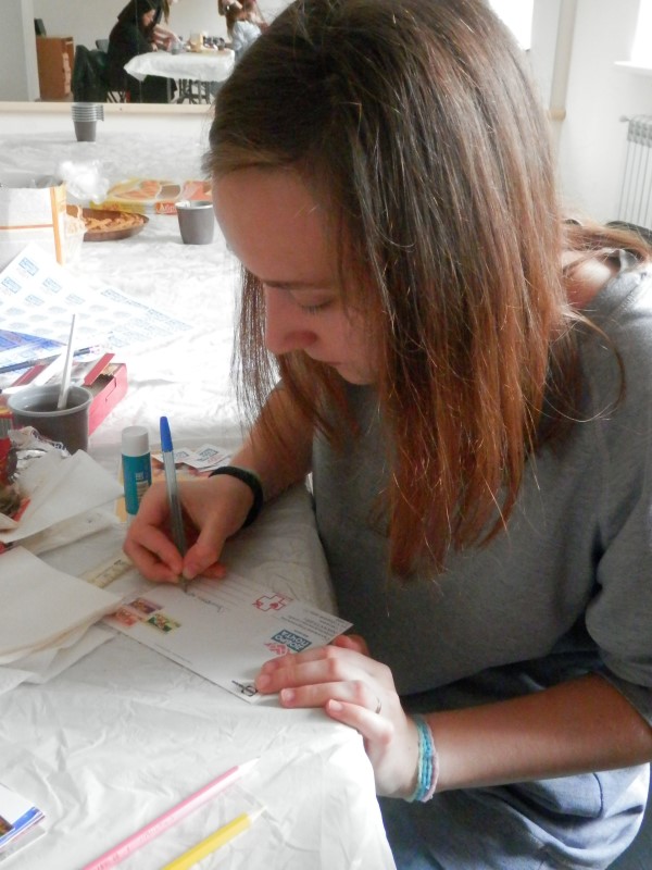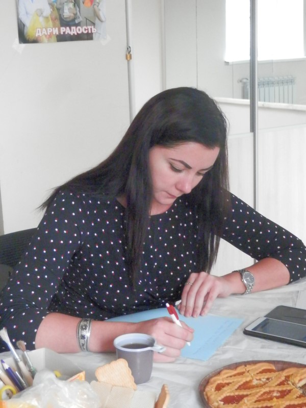 А добровольцы решили, что отправят свои добрые письма и открытки детям. Очень тронули всех истории малышей, которые стойко борются со своими болезнями, и несмотря на непростую ситуацию в их жизни, не перестают быть детьми: веселыми, озорными, открытыми миру. Писали письма не только те, кто собрался в социальном отделе, но и те, кто на встречу по тем или иным причинам прийти не смог. Возможность поделиться душевной теплотой с теми, кому нелегко, никого не оставила равнодушным.