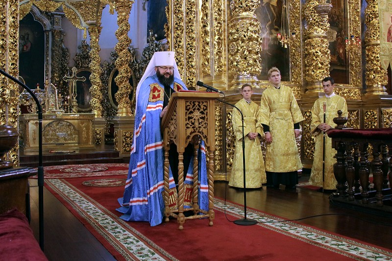 В конце богослужения Высокопреосвященнейший митрополит Исидор огласил Заявление Священного Синода Русской Православной Церкви в связи с незаконным вторжением Константинопольского Патриархата на каноническую территорию Русской Православной Церкви. В документе, принятом на внеочередном заседании Священного Синода Русской Православной Церкви 14 сентября 2018 года (журнал № 69), Священный Синод Русской Православной Церкви с глубоким сожалением и скорбью воспринял заявление Священного Синода Константинопольской Православной Церкви о назначении своих «экзархов» в Киев. Это решение принято без согласования с Предстоятелем Русской Православной Церкви и Блаженнейшим митрополитом Киевским и всея Украины Онуфрием – единственным каноническим главой Православной Церкви в Украине. Оно является грубейшим нарушением церковного права, вторжением одной Поместной Церкви на территорию другой.