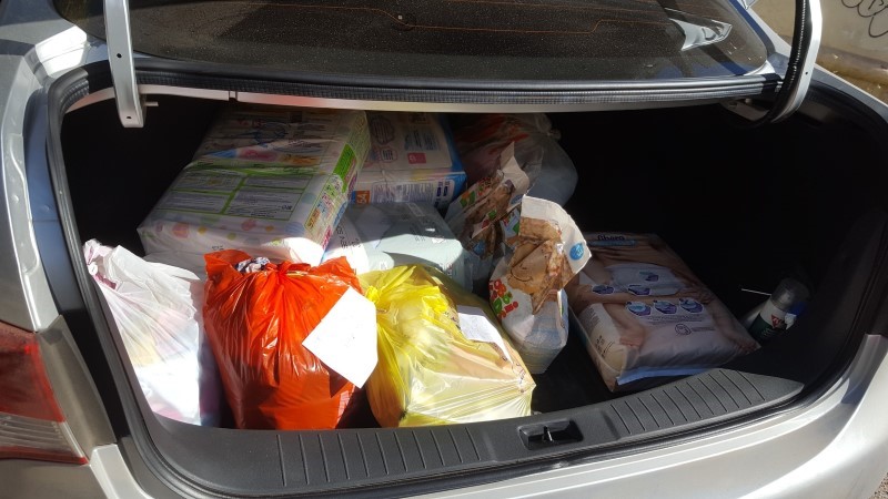 К сожалению, найти водителя, который бы ехал по маршруту Москва-Рославль (откуда семья смогла бы забрать посылку), не удалось, но смоляне решили устроить свой собственный сбор для Катюши, поскольку доставить груз по Смоленской области значительно легче и под силу добровольцам службы «Милосердие». В сборе принимало участие очень много людей: кто-то пожертвовал денежные средства (сумма сбора 5700 рублей) на приобретение памперсов, одноразовых пеленок, детских средств гигиены, детского стирального порошка и детского постельного белья, молодые мамочки поделились одеждой, из которой их малыши уже выросли, и игрушками, подарили очень нужный малышке манеж. Для семьи был собран продуктовый набор от благотворительного фонда «Русь», а «Смоленский дом для мамы» передал Катюше стульчик для кормления.