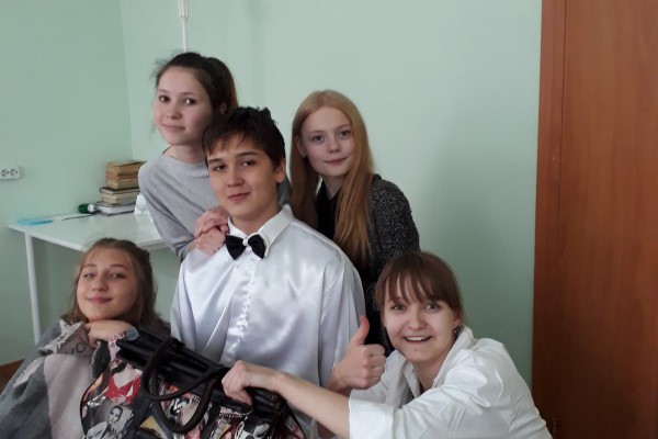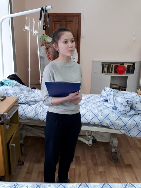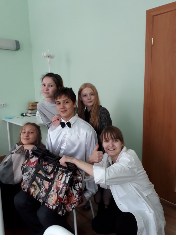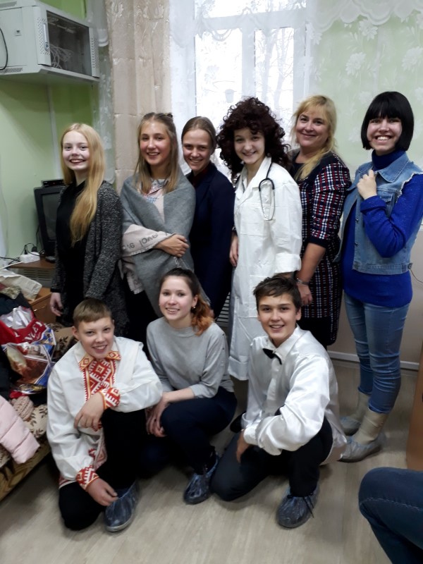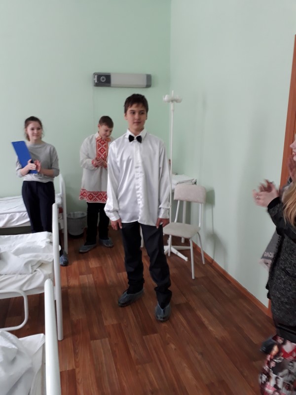 Ребята из СОШ №29 города Смоленска навестили пациентов хосписа с новой программой. Восьмиклассники вместе с руководителем волонтёрского отряда «Дорогою добра» Светланой Михайловной Бессарабовой поставили юмористический мини-спектакль «На “Первом”».