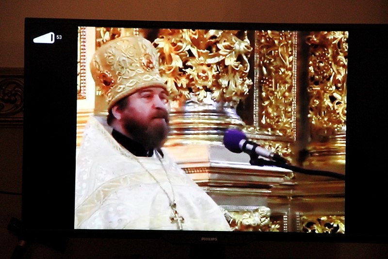 Священник поблагодарил за награду, поздравил смолян с наступающим большим праздником и сказал всем напутственное слово, напомнил о принесении мощей святителя Луки (Войно-Ясенецкого) в Смоленскую епархию и раскрыл духовный и жизненный подвиг святителя, автора книг и врача-хирурга. Затем все прослушали и посмотрели видеозапись проповеди протоиерея Михаила Горового, произнесенной им ранее на праздничной литургии в кафедральном соборе. Писатели узнали, каково служение Ангельского мира и как Небесные Силы бесплотные защищают людей от зла.
