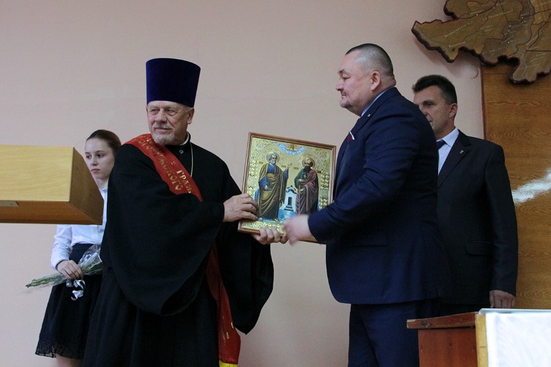 На молитвенную память Олегу Владимировичу Гарбару от имени Петропавловского прихода была преподнесена икона святых апостолов Петра и Павла. Митрополит Исидор вручил протоиерею Николаю корзину цветов, а председателю Дорогобужской районной Думы Виталию Викторовичу Таранову – икону Господа Иисуса Христа.