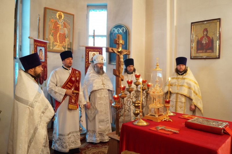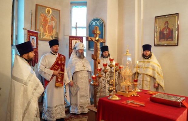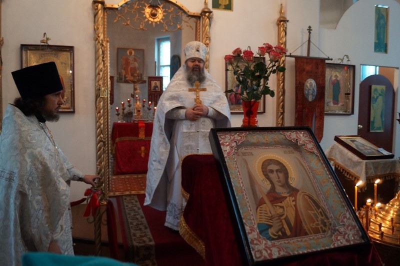 После литургии состоялся крестный ход, в завершение которого перед образом святого Архангела Михаила был совершен молебен.