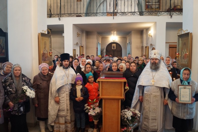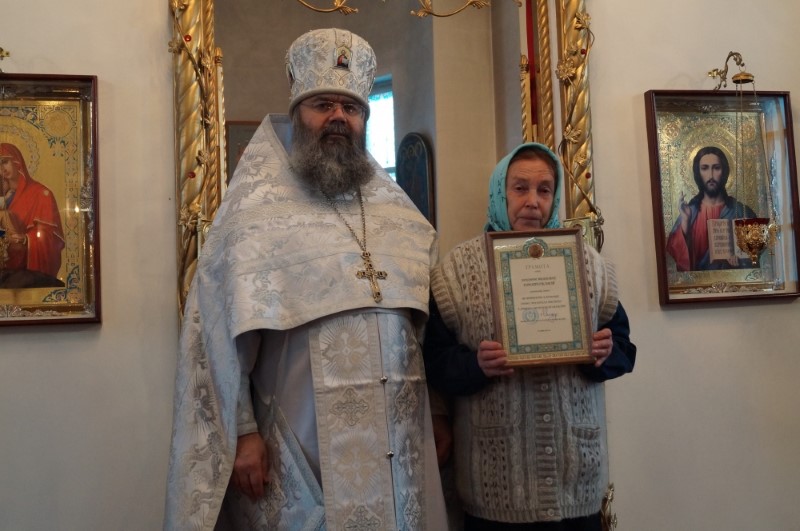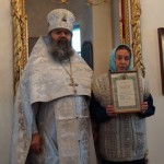 Протоиерей Василий поздравил настоятеля храма и верующих с праздником. По благословению правящего архиерея Высокопреосвященнейшего Исидора, митрополита Смоленского и Дорогобужского, он вручил архиерейскую грамоту прихожанке храма З.И. Ерутенковой.