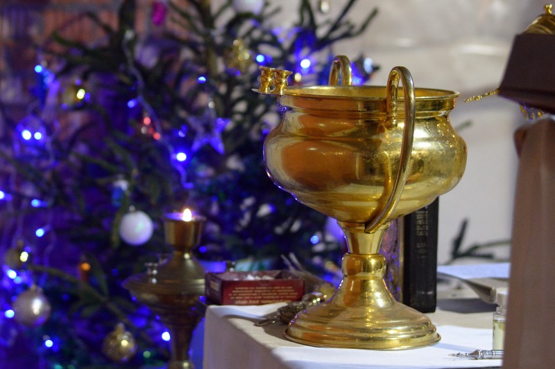 Митрополит Исидор поздравил всех с наступающим новолетием и Рождеством Христовым, а затем вручил сладкие подарки и освященные мандарины.