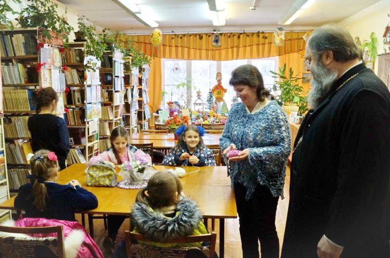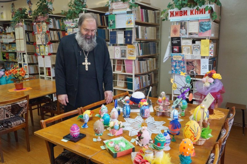 Также протоиерей Василий в школе №7 посетил выставку, проходящую в рамках конкурса и посвященную главному православному празднику – Воскресению Христову.